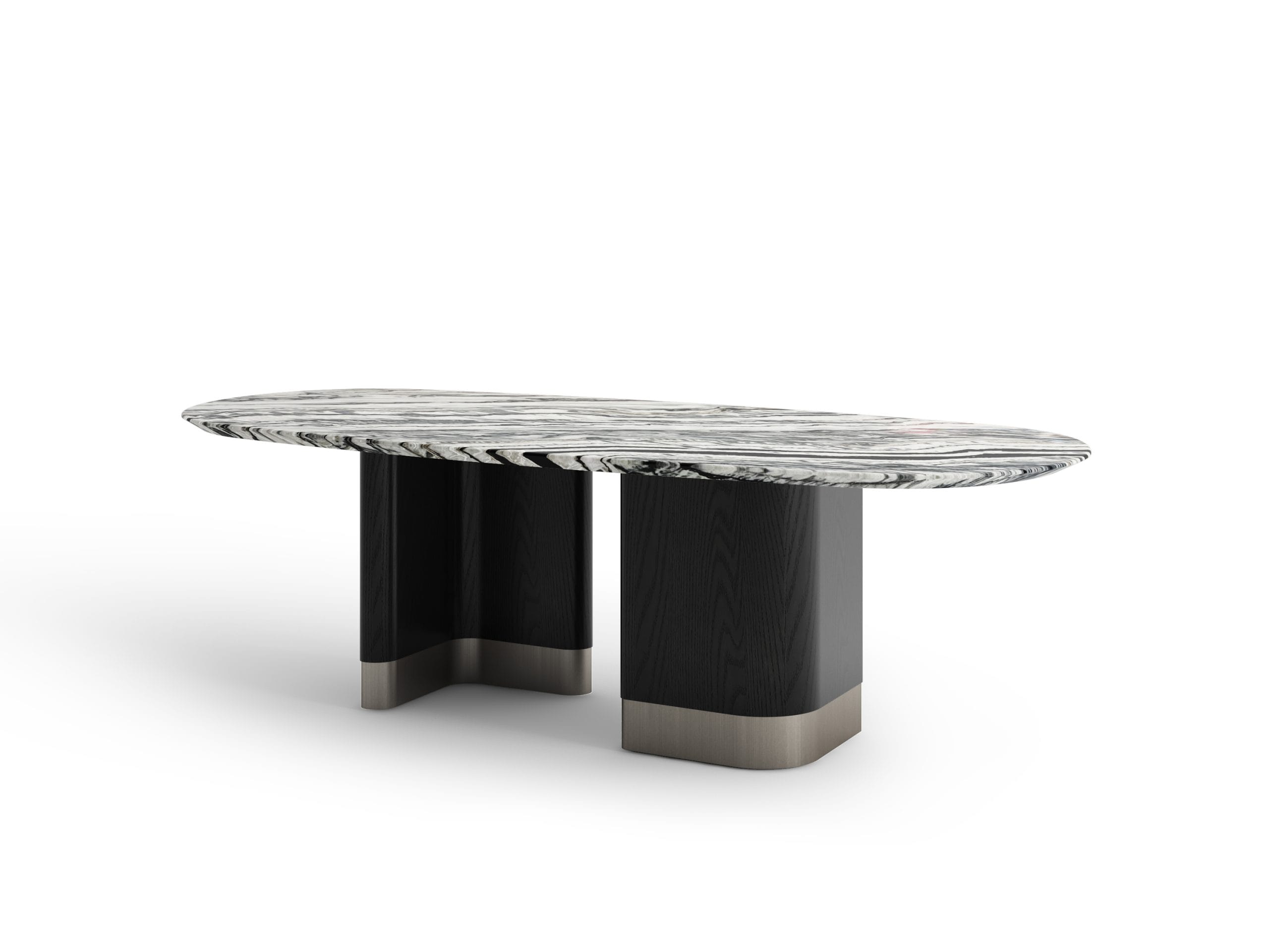 Part of our furniture collection, this dining tables/rectangular tables is designed in a modern style using premium materials like marble top, mdf with veener stainless steel base.